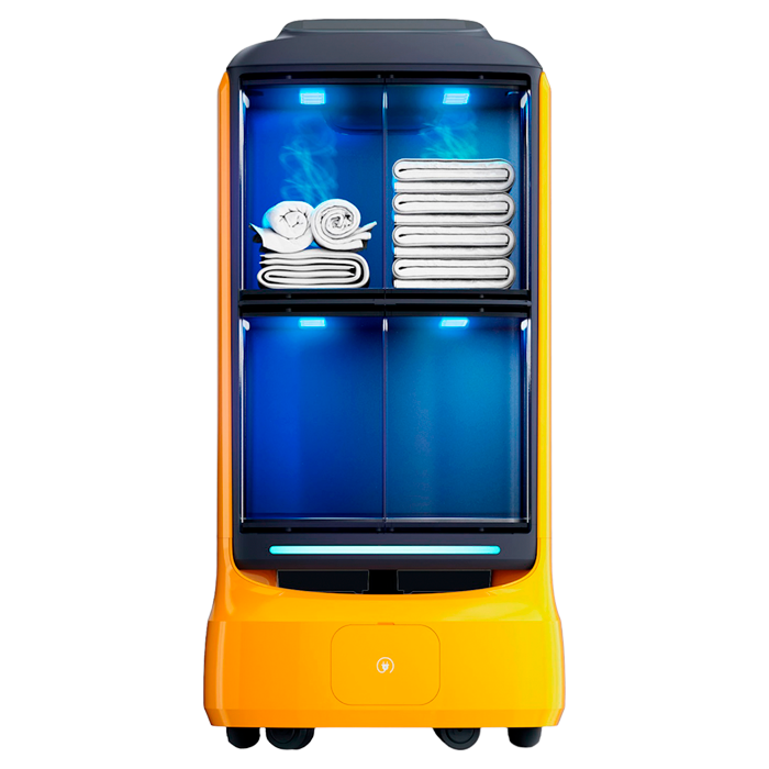 - En busca de mayor seguridad, BellaBot está equipado con sensores 3D y un nuevo chasis modular. Puede detenerse en cualquier ángulo y alejarse en cuanto detecta obstáculos.