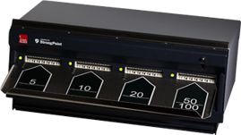 La unidad de monedas presenta es de aceptación individual y las cuenta automáticamente y las monitoriza. Esta información es transferida al software de gestión de efectivo. una cerradura electrónica, que registra cualquier apertura, protege el dinero. Esto supone una segura y precisa gestión de las monedas, tanto para los empleados y los clientes y el negocio.